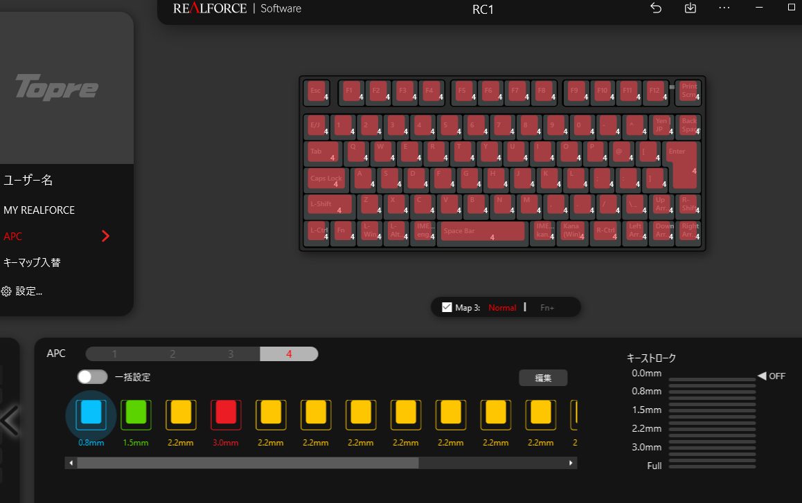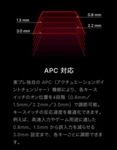 試しにAPCを段階的に深くしていって一番深い3.0mmに変更したところ、余計なキーを触っても反応せず意図した通りに的確に入力することができるようになりました。