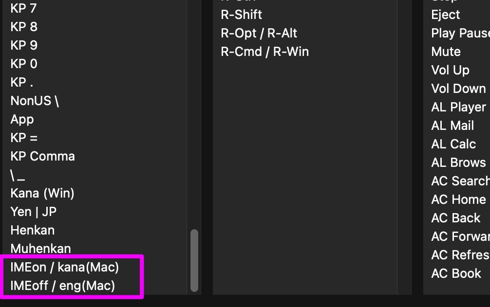 デフォルトでは、左が無変換。右が変換キーに設定されていますが、これだと恐らくWindowsしか動作しない。