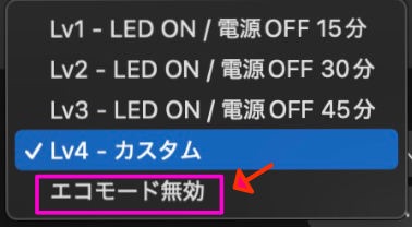 基本15分、30分、45分から選択するようになっていますが(上図のLv1〜3)、Lv4のカスタム設定で10分ごと180分まで設定することも可能です。所定の時間にオフにすることで、バッテリーの持続時間を増やそうという狙いです。