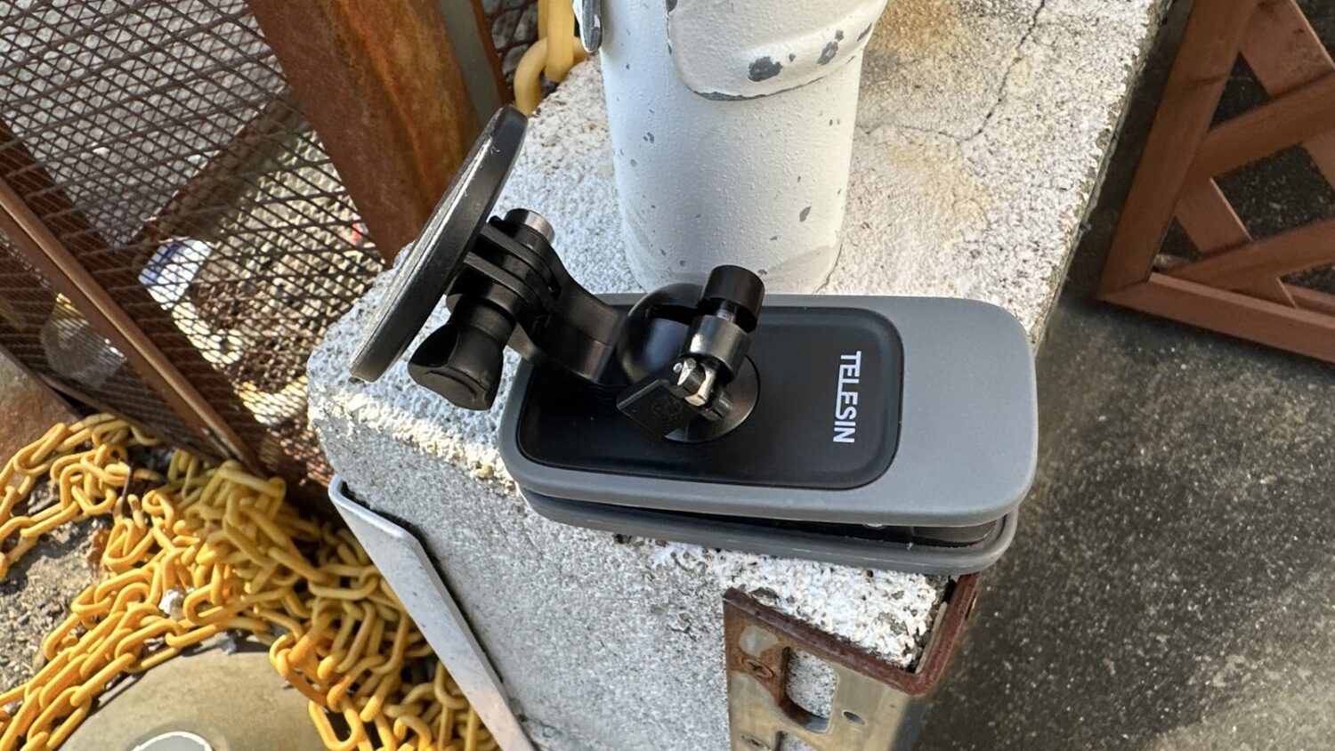 • ポイント: 磁石の極性の関係でカメラを完全に水平にはできませんが、、GO Ultraの「水平維持機能」をオンにしていれば、映像はバッチリ水平に撮れるので問題ありません。